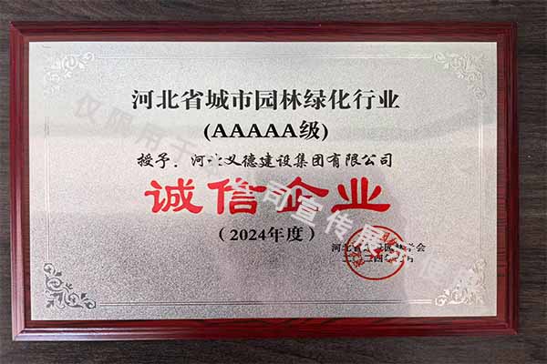 近年來(lái),我公司始終秉持穩(wěn)健經(jīng)營(yíng)、精益求精的發(fā)展理念,憑借扎實(shí)的綜合實(shí)力與良好的行業(yè)口碑屢獲認(rèn)可,先后被授予河北省扶貧龍頭企業(yè)、國(guó)家林業(yè)標(biāo)準(zhǔn)化示范企業(yè)、2019年度全國(guó)苗圃50強(qiáng)、2018-2019年度河北省林業(yè)重點(diǎn)龍頭企業(yè)、保定市精品特色現(xiàn)代農(nóng)業(yè)園區(qū)等稱(chēng)號(hào);在誠(chéng)信經(jīng)營(yíng)與行業(yè)建設(shè)領(lǐng)域,更是接連獲得2019-2023年河北省建設(shè)工程招標(biāo)投標(biāo)誠(chéng)實(shí)守信5A級(jí)施工企業(yè)、2019-2024年河北省城市園林綠化行業(yè)誠(chéng)信5A級(jí)企業(yè)、2021-2023年河北省誠(chéng)信企業(yè)、2021-2024年度河北省園林優(yōu)秀企業(yè)、2023-2024年河北省風(fēng)景園林學(xué)會(huì)先進(jìn)集體及2025年度安國(guó)市“誠(chéng)信企業(yè)”等多項(xiàng)榮譽(yù),凸顯了公司在扶貧攻堅(jiān)、林業(yè)標(biāo)準(zhǔn)化發(fā)展、工程施工及誠(chéng)信經(jīng)營(yíng)等多方面的扎實(shí)基礎(chǔ)與優(yōu)勢(shì)。