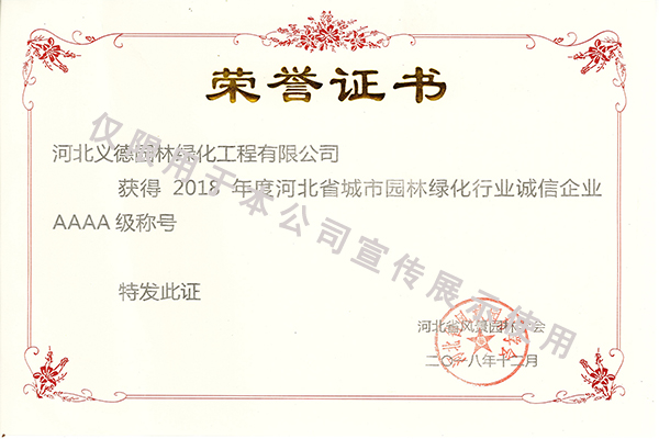 2018年度河北省城市園林綠化行業(yè)